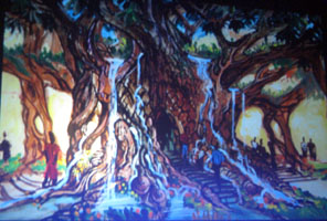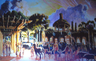 Featured here is some great concept art from Joe Rohde's presentation detailing the changes that were made in the original Animal Kingdom entrance plaza. Note the procession of animals in the left photo below. That concept was deemed unworthy due to the realization that animal backsides would often be included in guest photos.