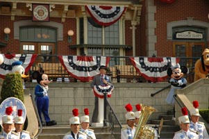 As in previous years, the re-dedication ceremony was conducted by the Mayor of Main Street, flanked by Mickey Mouse and his friends.