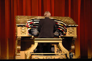 We planned to tour the theater prior to the show, but we were late and the tour was postponed until after the movie. We entered the auditorium to the sounds of the Mighty Wurlitzer Pipe Organ, which is quite a unique experience - so much more soothing than the normal barrage of commercials common to most theaters. Soon, the organist and the Wurlitzer sunk into the stage, and the live performance began