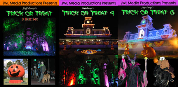 As a special Halloween treat, we are offering Jeff Lange’s Trick or Treat 3-Disc Set, Jeff Lange’s Trick or Treat 4 (Mickey's Not So Scary Halloween Party 2007) and Jeff Lange’s Trick or Treat 5 (Mickey's Not So Scary Halloween Party 2008) together for a special low price.